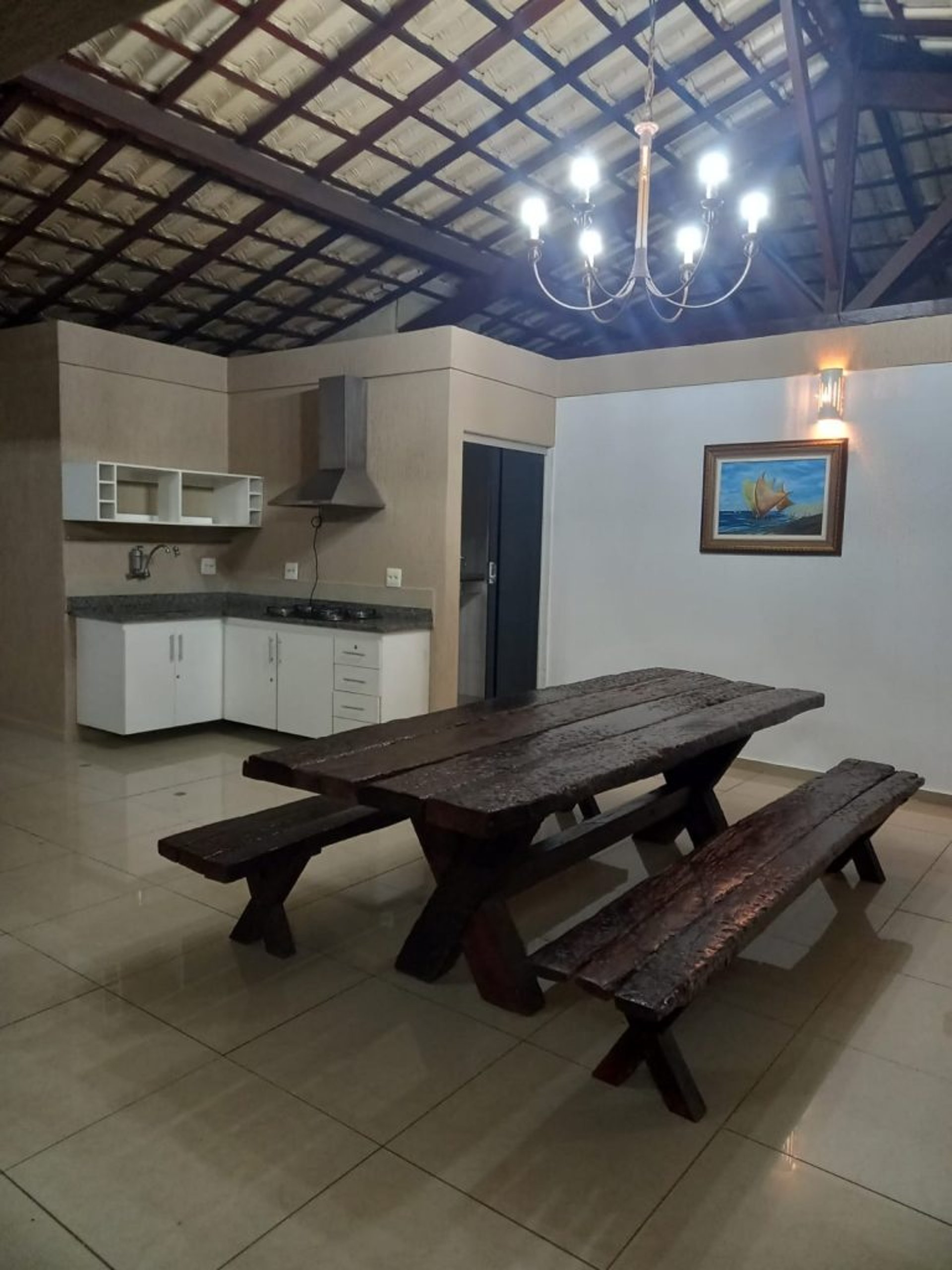 Espaço coberto para até 70 pessoas sentadas