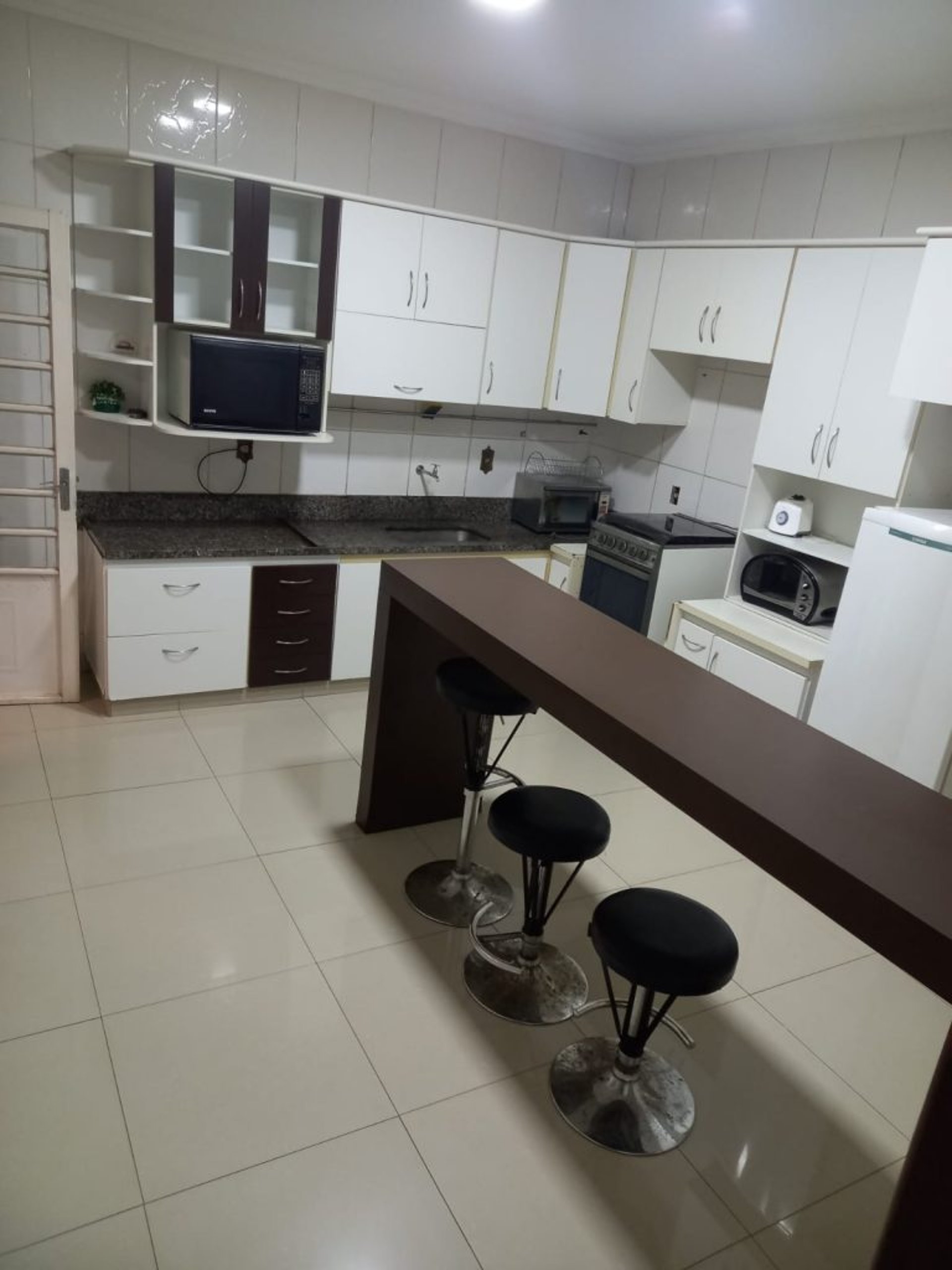 Geladeira, micro-ondas, forno elétrico e utensílios domésticos