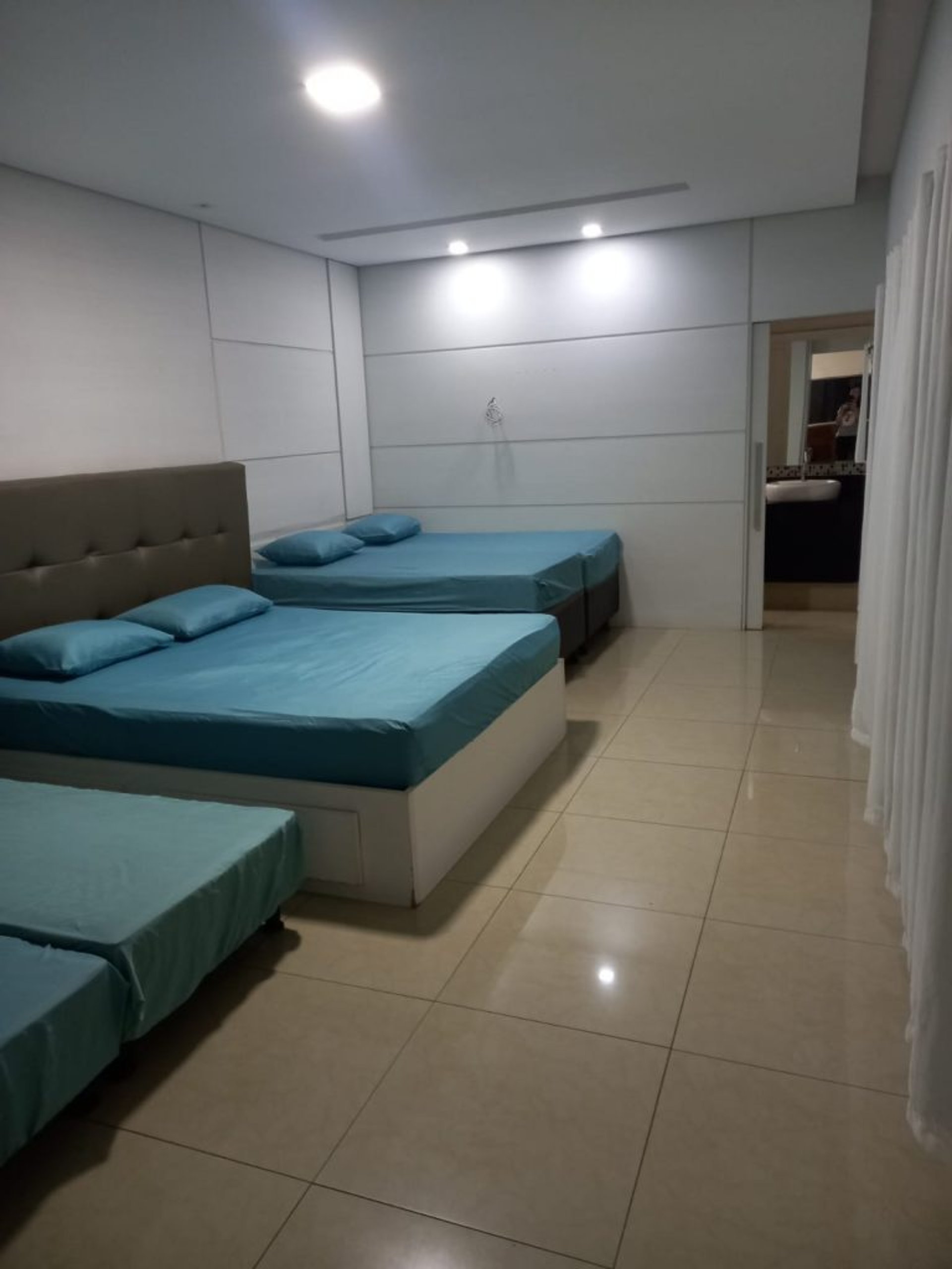 1 suíte com 1 cama de casal + 4 de solteiro